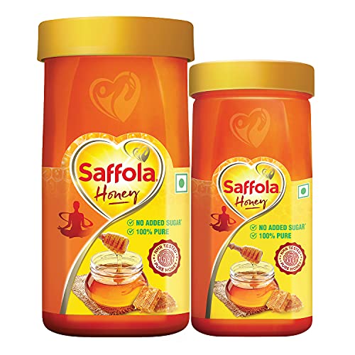 Saffola Honey is natural honey in its purest form. It is tested and approved after many rigorous quality checks including the NMR test. Each bottle of Saffola Pure Honey contains natural antioxidants, has No Added Sugar and comes with a Purity certificate that is made available to its consumers.