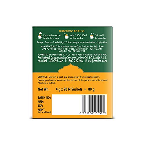 Generic Name:Saffola Immuniveda Kadha Mix- 80g (20 Sachets x 4g ) | Ayurvedic Immunity Booster Herbal Tea with Ayush Kwath