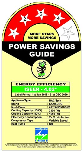 Energy Rating: 4 Star High energy efficiency| Annual Energy Consumption 634.66 Units per year | ISSER Value: 4.02