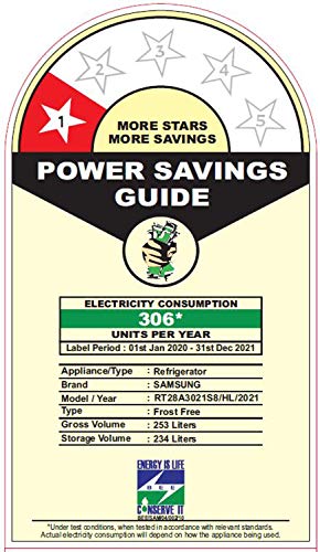 Energy rating 1 Star Low energy efficiency.