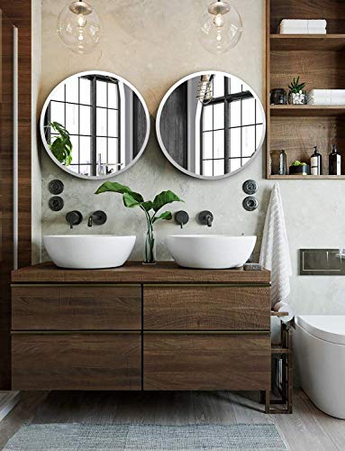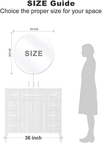 CLASSIC DESIGN: A longstanding bestseller, this simple yet sophisticated beveled Round wall mirror is a highly versatile design. Measuring 24 inches x 24 inches, this mirror features a sleek and modern 3/4 inch beveled edge. Our premium silver backing prevents corrosion in humid environments, making this an ideal mirror for your bathroom vanity, powder room, or any other room of your home.