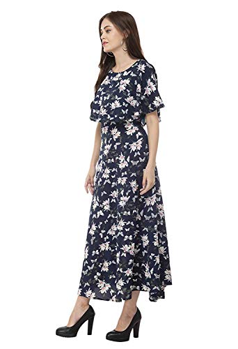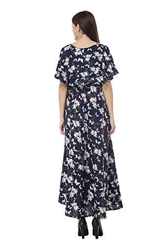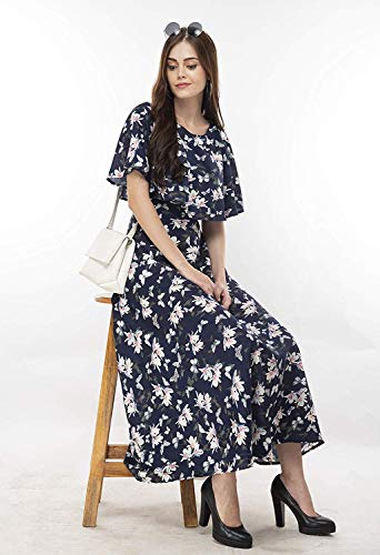 Latest Foral Printed Crepe Fit & Flare Maxi Long Cape Dress For Women