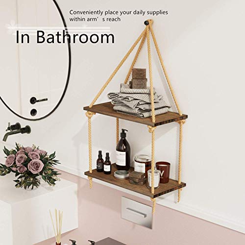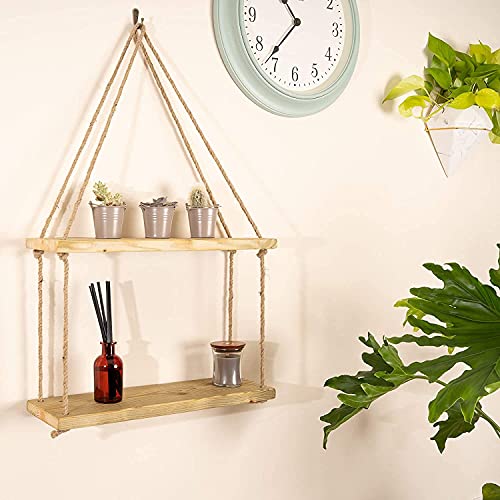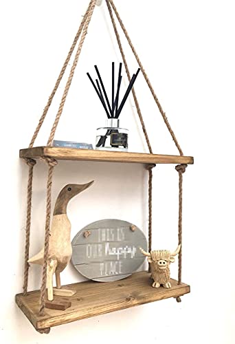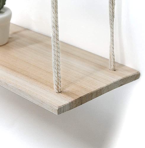 The perfect combination of solid wood with clear texture and the unique handcraft creates a retro style. The rope of these rustic wood hanging shelves with rope is sturdy and solid. The texture of the hemp rope adds a rustic retro style. Reduce clutter and highlight your rustic décor while keeping everything organized. They can be hung on the wall, in front of a window, on a terrace, indoor or outdoor. Perfect for displaying, adding additional shelving space for books, collectables, plants, crafts, photos stuffed animals and more.