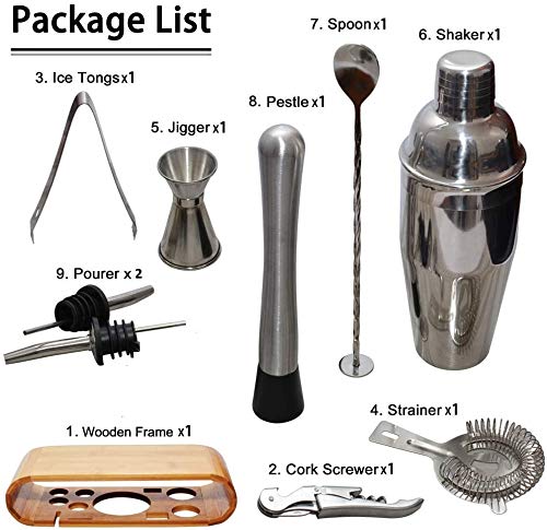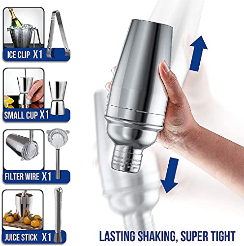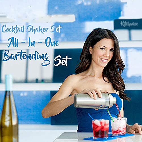 🍹【Premium Cocktail Shaker】Our bar set is made of 304 Stainless Steel, which is the anti-rust. Also the stainless steel bartender set is flavorless and corrosion-proof. The Shaker with built-in-strainer will not leak while shaking or mixing to ensure your impressive experience.