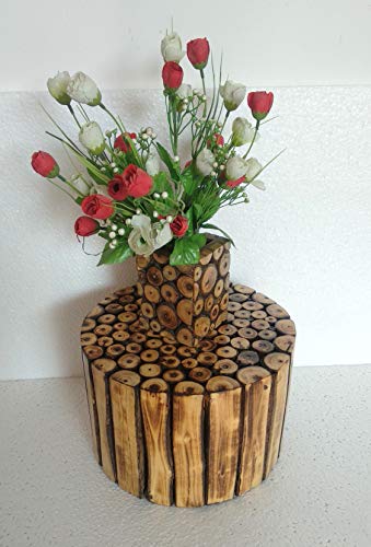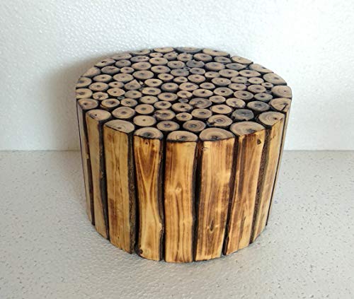 Traditional round stool with a unique design. Suitable for Use As Bedside/Lamp/Side Tables/ Study Table / Sitting Purpose/garden stool/planters,outdoor furniture/coffee table/for keeping aquarium/statues/ flower vases/ pots. Made up of wood logs and hollow from inside but sturdy enough to bear weight up to 100 kg