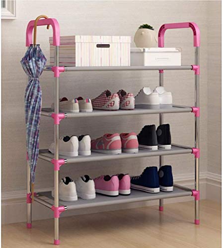 - Multipurpose Portable Folding Shoes Rack Shelf Cabinet Wardrobe Organizer Stand-4 Layer Pink.