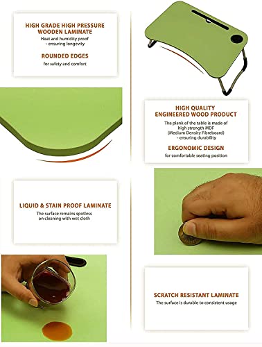 SMART ZONE (LAPTOP TABLE) ★★★Durable and Sturdy structure ★★★: ★ Made of powder-coated metal tubes and high-quality Engineered Wood top board. ★ This Laptop Table have good compression resistance. ★★★Multi-purpose table/desk: ★★★1. Not only work as a laptop table but also as a TV Dinner Tray, serving table for patients/kids, Standing Desk for office workers, Book Writing Desk for kids, Tablet Holder, Standing Desk/Stand Up table Suitable from 5-year-old child to 80-year-old senior. 2. A smooth surface laptop table can use for surfing the internet, reading book, painting work, enjoy leisure snack time, serving breakfast, enjoy family time on your bed, sofa, couch, floor, lawn etc.. 3. Using it for simple dining table, laptop computer table, studying desk, serving table, or any other scenes you want for reading/writing/drawing/playing board games/models puzzles arts. ★★★Unique design and beautiful finish: ★★★ 1. It features anti-slip legs so that the laptop will not skid while using. No assembly required, foldable frame for easy carry and storage. Simple design make your life more fashion.Fit for 15.6 or even for 17 inches laptop. You can use in the office, bedroom, car etc..