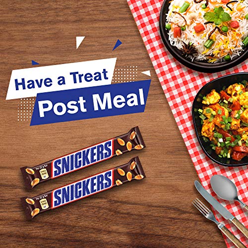 Why this Chocolate? The best way to celebrate any occasion is to add some sweetness to it. Add some peanutty sweetness and power to your celebrations with Snickers Chocolate Bar. Made with real peanuts and chocolate, this premium chocolate satisfies your taste buds and helps you fuel up for the festivities. Don’t let stress get to you, brace yourself for a chocolatey peanut collision with Snickers and bid goodbye to unwanted worries. Hurry up and awake the chocolate fanatic in you! What makes it different? Snickers bar, packed with delicious and nutritious roasted peanuts, also contains nougat and caramel, creating a flavor that’s enough to rock your taste buds, while busting hunger pangs between meals. Don’t sacrifice taste for nutrition, use it as a sweet treat for your loved ones and watch them enjoy and rejoice in these delicious premium chocolates. When to have this bar? Reach out for a Snickers chocolate to brighten up any celebration, tackle snack time while working at home, grocery shopping or gaming, because you’re not you when you’re hungry. Turn this amazing chocolate into a decadent cake, wave goodbye to normal brownies and make delicious Snickers brownies or try quick and tasty Snickers pudding. There is so much that you can do with Snickers, the choice is yours!