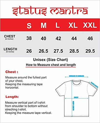 Perfect choice for Summer to wear with Jeans or Trousers.These shirts are long-lasting tees, something that you can wear to a party or any occasion.Care: Hand wash or Machine Wash/Cold Water.The relaxed fit features reinforced double stitching on all seams, with a medium weight that will last years to come.Make the ultimate fashion statement with STATUS MANTRA Half Sleeve T-Shirt. Using a 100% Cotton T-shirt that’s hand-dyed with ecofriendly inks, it’s then Screen printed with the realistic, graphic.