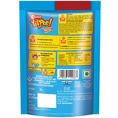 Sunfeast yippee creamy corn tricolor pasta 70gm (Pack of 5). Tasty to eat and healthy.