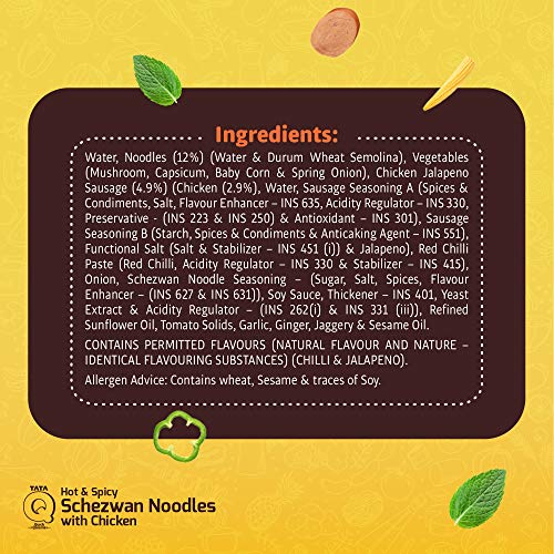 A bowlful of spicy noodles packed with chicken, veggies, noodles tossed together with lots of spicy schezwan sauce. Just heat for 60 seconds in a microwave, or 3 to 5 minutes in a hot water bath and your delicious meal is ready! No further cooking or addition of ingredients required.