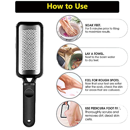 ✅ HOW TO USE: Remove your Dead Skin Or Callus. Heavy use Stainless Steel Scrubber. Soak your feet in warm water and scrub with the scrubber ✅ HEAVY Blades: Heavy blades for removing old Callus, thick Dry skin on feet ✅ PREMIUM QUALITY: Gives equally good results on both dry and wet foot surfaces that allows the user to work according to your own preference and satisfaction ✅ ERGONOMIC DESIGN: Comes with round design to fit the heels perfectly and comfortable grip and a hole to hang the scrubber ✅ STAINLESS STEEL MATERIAL: Get rid of wooden or plastic, the foot callus remover is made from non-slip premium stainless steel with high grade pvc handle, safe and wear-resistant; Sturdy design makes sure it is not easy to break off with long durability