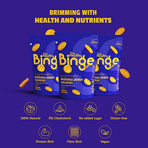 ✅[The Healthiest Snack on the Block] – 100% baked, all-natural, filled with enriching nutrients like calcium, iron, fibre, protein etc. Made with premium Sunflower oil, the Healthy Binge crispies have 50% less fat than regular fried chips, 0% trans-fat, 0% cholesterol and are 100% healthy and wholesome.