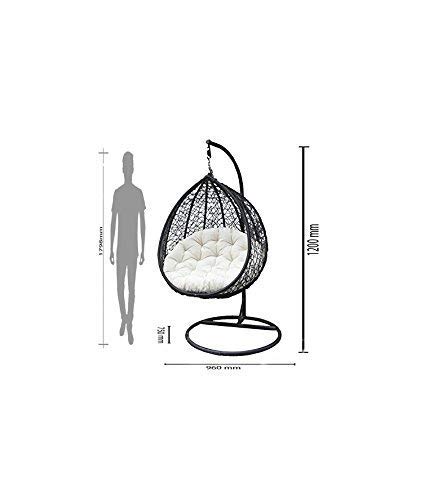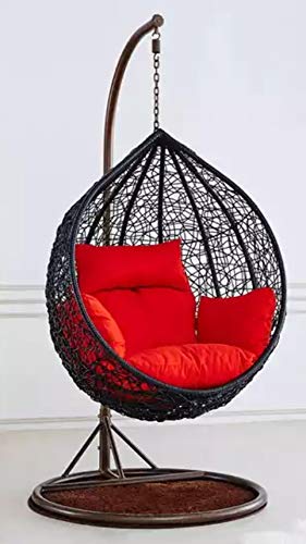 STAND AND CUSHIONS ARE INCLUDED: Never worry about maintenance with this hanging chair patio set. The Ratan Wicker and iron swing seater is protected with finishing to resist the suns heat and rain. Our cushions are tough, yet soft with cushioned seating and Ratan Wicker material, your guests can sit back and relax with luxury accommodation. Our cushions are made with moshi cloth and poly fillers for the perfect snug. The chair takes minimal area cover