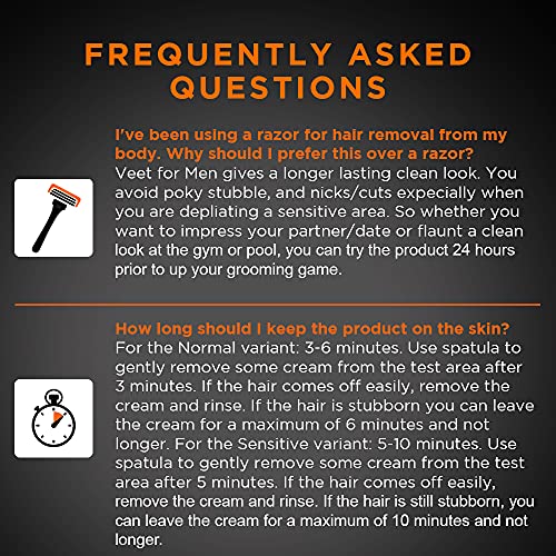 Whether you want to impress your partner/date or flaunt a clean look at the gym or pool, Veet Men hair removal creams help you up your grooming game. You can now remove unwanted body hair without the nicks, cuts, and prickly stubble that shaving often leaves behind in just 5 minutes! It is ideal for removing hair on the chest, back, shoulders, arms, underarms and legs. Whilst removing hair, Veet not only hydrates skin for up to 24 hours, but its fragrance technology is also designed to ensure that there is no lingering malodor. Follow the steps mentioned on the pack using the spatula provided.