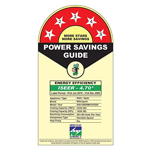 Energy Rating: 5 Star. Annual Energy Consumption: 581.98 Units. ISEER Value: 4.70