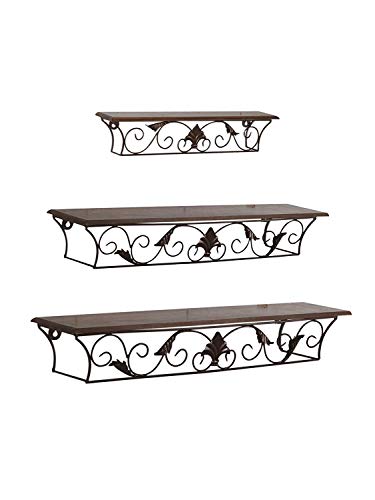 Woodkartindia Wooden Iron Wall Shelf Wall Bracket Floating Wall Sheves Set of 3 for Home Decor, Living Room Decor