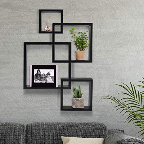 Worthy Shoppee Wooden Intersecting Wall Shelves/Shelf for Living Room | Office, Bathroom Set of 4 | Black