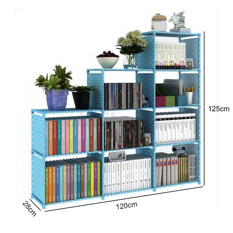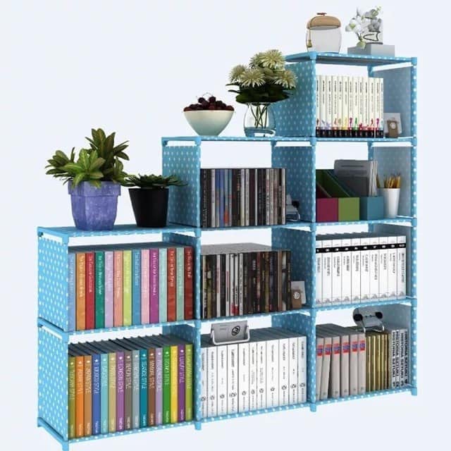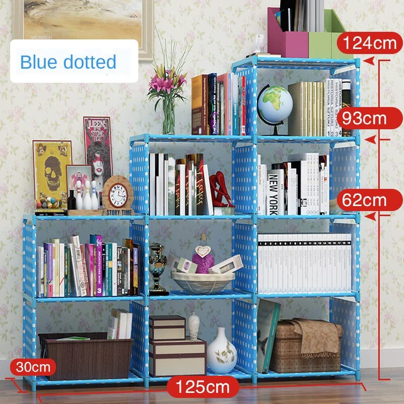 Zemic Multipurpose Bookshelf| Alloy Steel Metal Storage Shelve For Books Storage Organizer| Children Book Rack|Cabinet Shelves For Bedroom Office Living Room (Set Of 9 Cases, Blue)